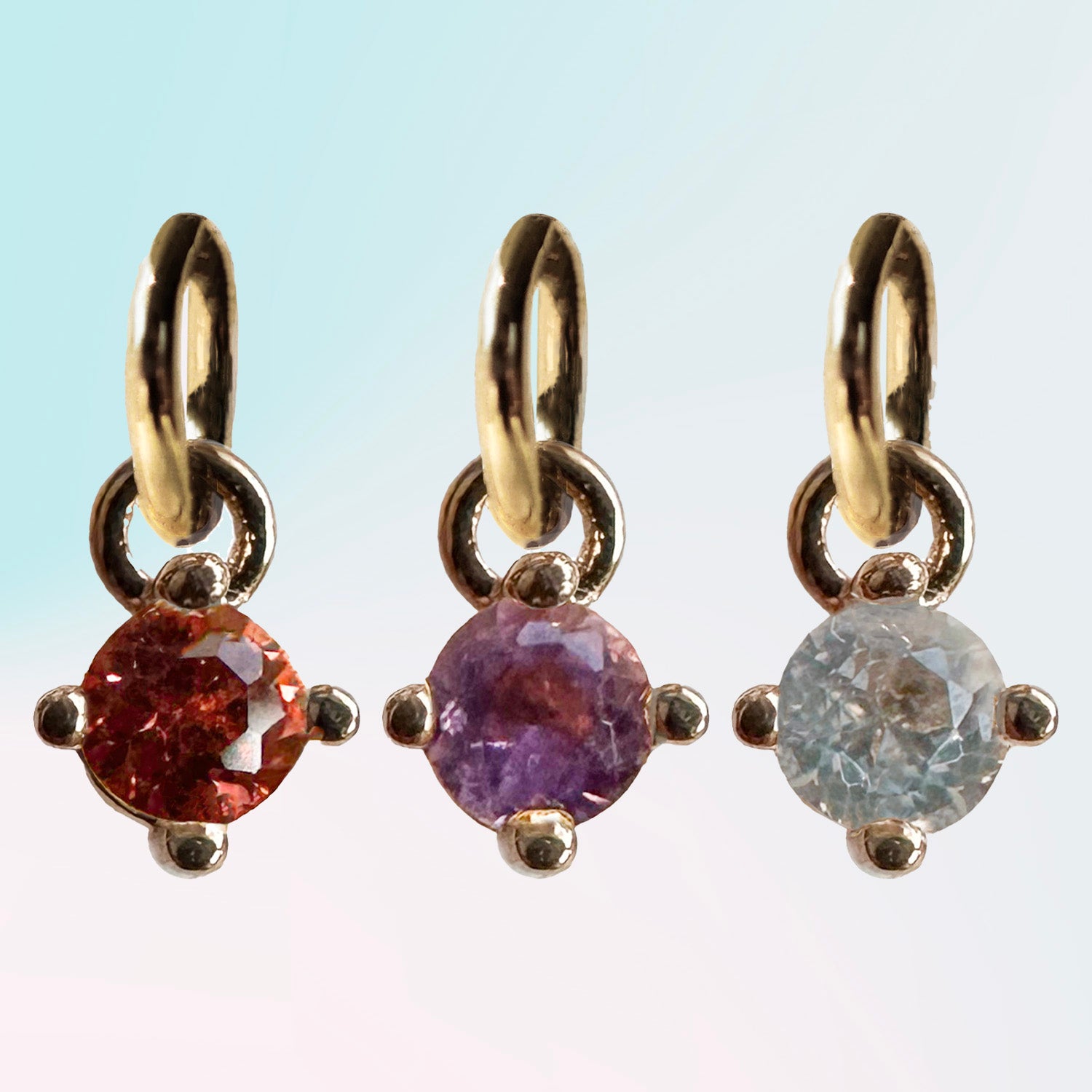 Tiny but full of charm & personality. Our teeny tiny Birthstone Bezel Charm is perfect alone or layered alongside other charms. Select a jump ring connector in either a classic circle or sleek oval shape to find your ideal fit. The oval jump ring slides easily over most dainty chains, or can be affixed with pliers to attach and secure it wherever you need.