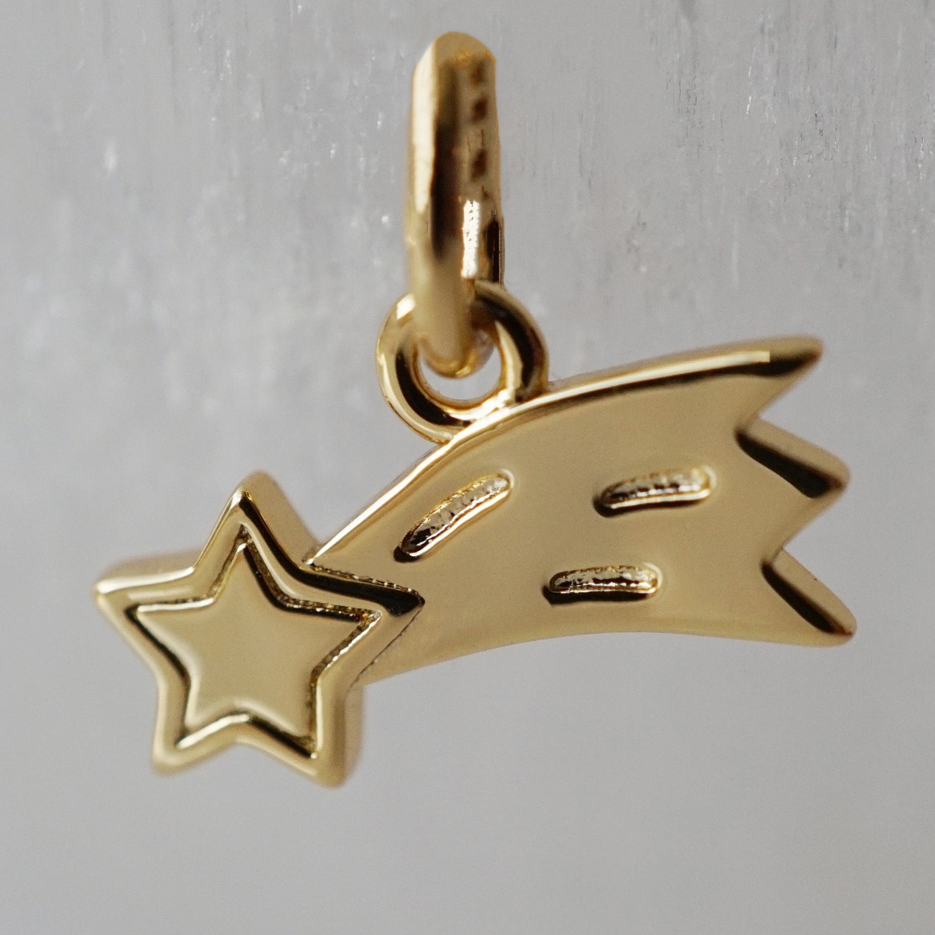 Tiny but full of charm & personality. Our playful Shooting Star Charm is perfect alone or layered alongside other charms. Select a jump ring connector in either a classic circle or sleek oval shape to find your ideal fit. The oval jump ring slides easily over most dainty chains, or can be affixed with pliers to attach and secure it wherever you need.