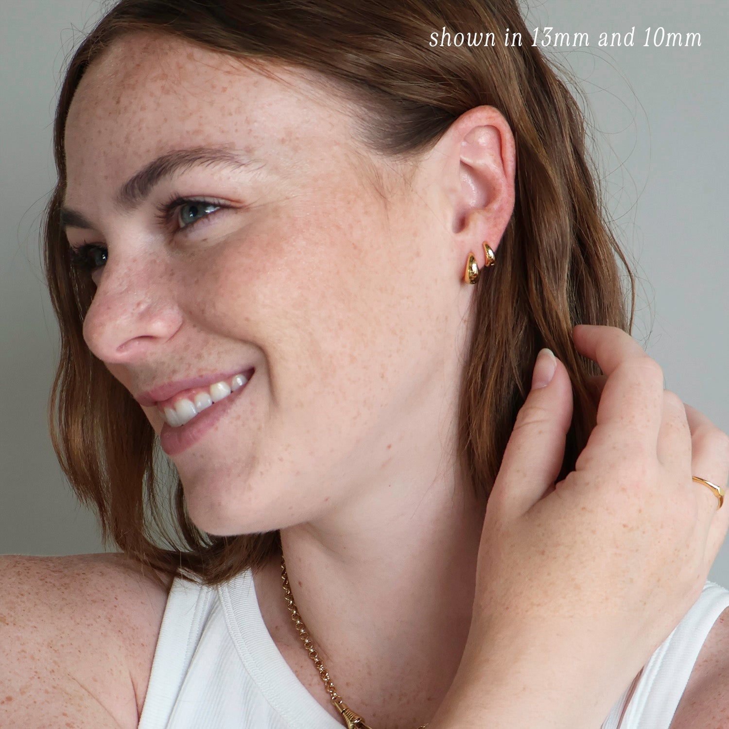 Domed huggie hoops that hug your earlobe just right. For the perfect fit, we made them in three sizes - 10mm, 13mm, and 17mm. Polished, lightweight, and ridiculously stylish and comfortable, these are the kind of hoops you’ll reach for day after day. Trust us - once they're on, you won’t want to wear anything else.