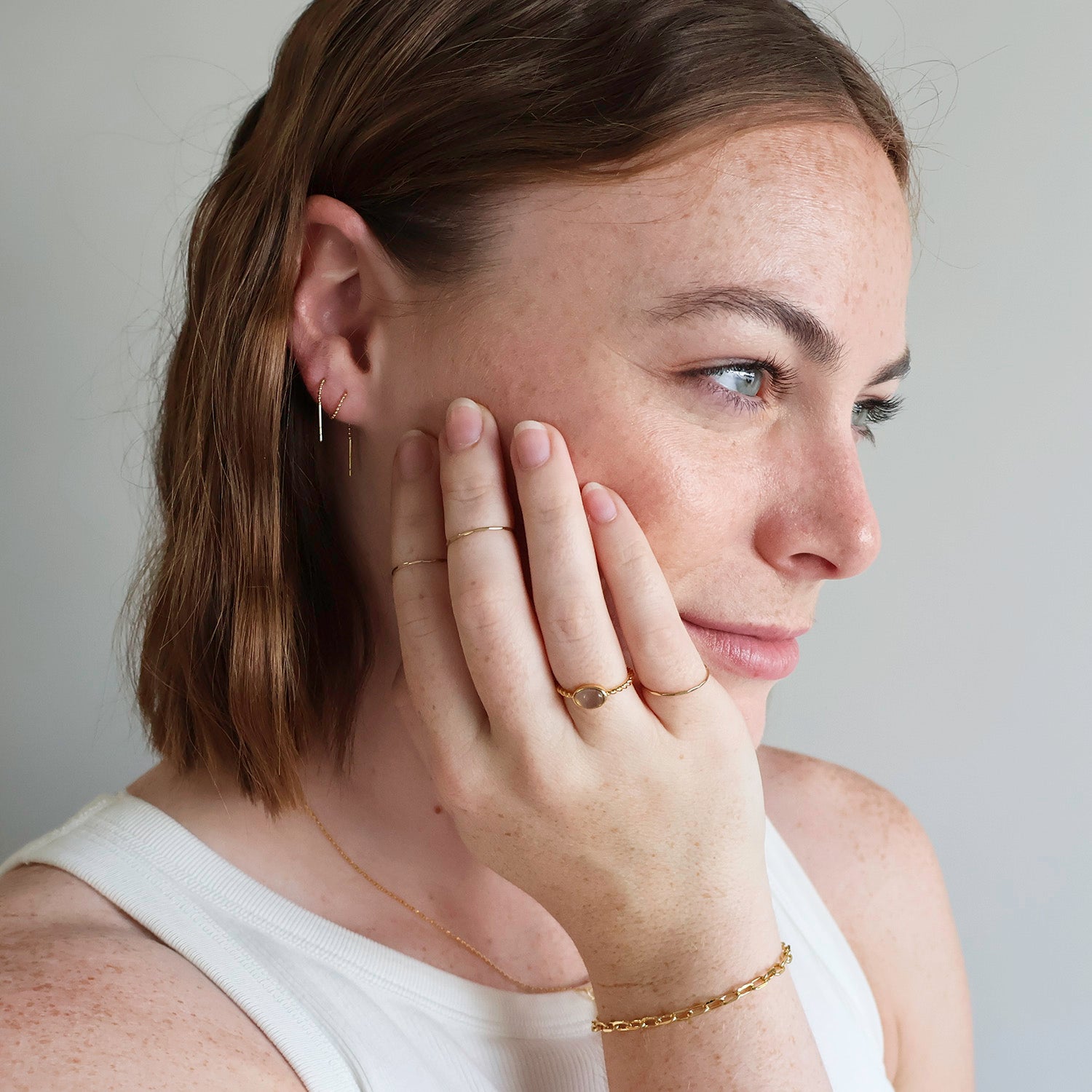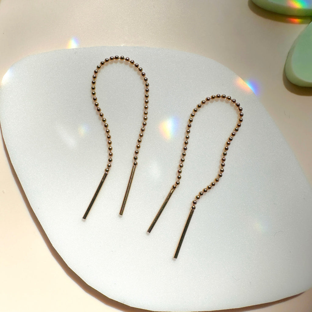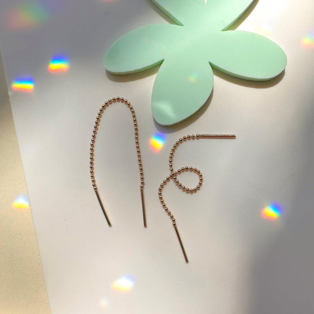 Our Ball Chain Threaders strike the perfect balance between sleek and playful. Easy to wear and style - wear them through one piercing or thread them through two for a playful twist. Lightweight, versatile, and made for everyday shine.