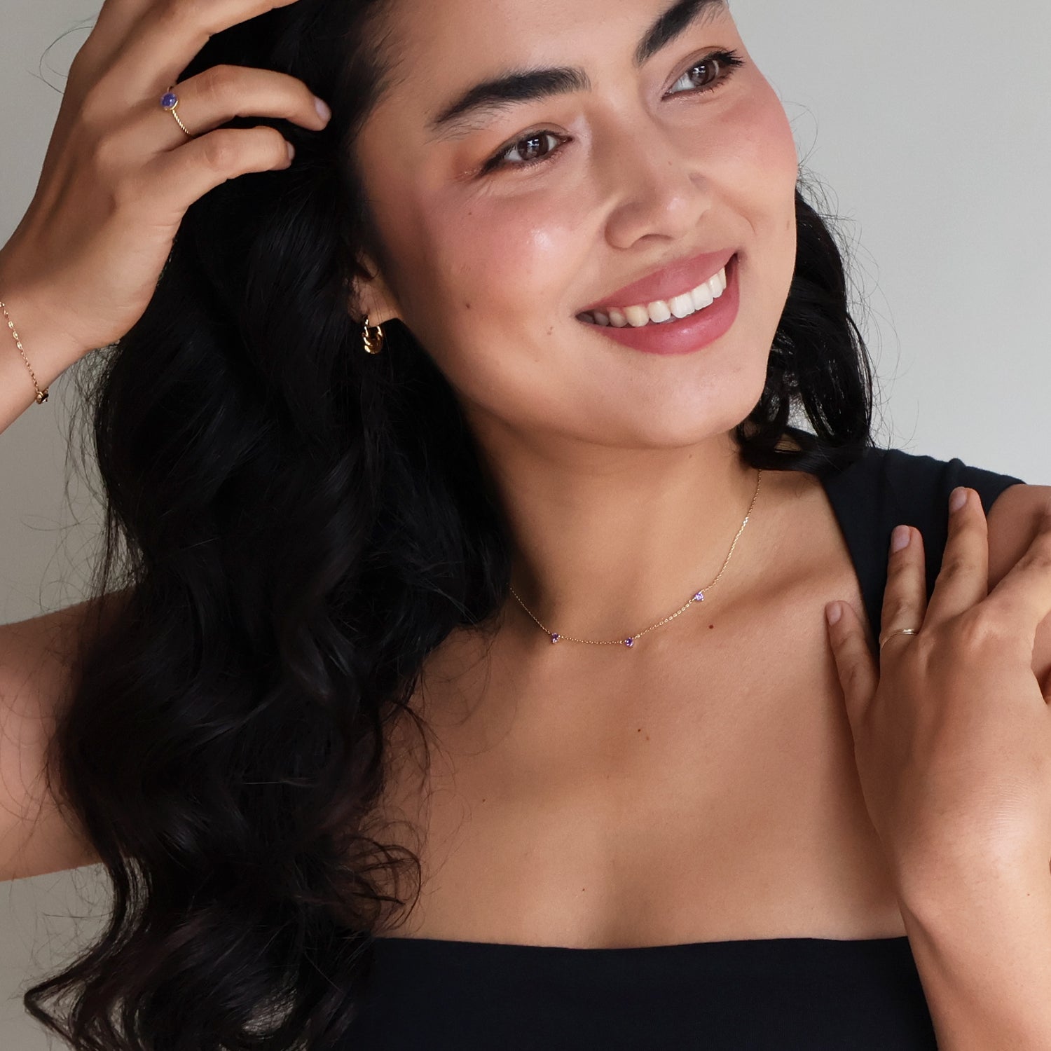 Necklaces, bracelets, and earrings are plated with 18k gold, 18k rose gold, or rhodium and finished with a protective coating.
