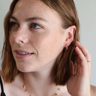 Fluid, organic shaped hoops that look understated but are anything but. These have a hinged leverback closure to keep 'em seamless (and comfy!). We especially love wearing the two sizes together on each ear for an effortlessly cool pairing.