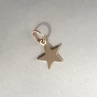 Solid 14k gold tiny star charm on a delicate chain, perfect for personalizing jewelry.